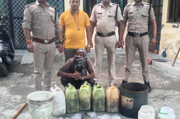 ऋषिकेश :कौशल्या देवी पत्नी मोहन सिंह के घर पर एक नेपाली मूल के व्यक्ति जीत बहादुर पुत्र बाबूराम निवासी भल्ला फार्म ऋषिकेश के द्वारा अवैध कच्ची शराब बिक्री की सूचना पर आबकारी टीम ऋषिकेश द्वारा गोपनीय खरीदारी करवाई गई तथा घर के पीछे खेत एवं घर की तलाशी लेने पर 05 डिब्बो के अंदर लगभग 100 kg तैयार लहन एवं प्लास्टिक की थैलियों तथा बाल्टी के अंदर से लगभग 20 लीटर कच्ची शराब बरामद हुई कौशल्या देवी से पूछताछ करने पर बताया गया कि जीत बहादुर मेरे घर पर किराए का कमरा लेकर अवैध कच्ची शराब की बिक्री करता है। अभियुक्त जीत बहादुर पुत्र बाबूराम को गिरफ्तार कर धारा 60 आबकारी अधिनियम के अंतर्गत अभियोग पंजीकृत किया गया है ।