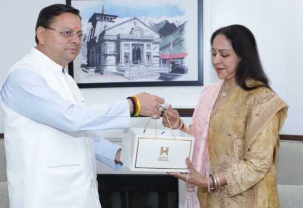 नई दिल्ली: सीएम धामी से अभिनेत्री और सांसद हेमा मालिनी ने की शिष्टाचार भेंट