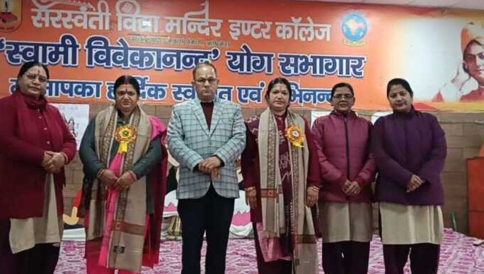 ऋषिकेश :सरस्वती विद्या मंदिर इंटर कॉलेज, आवास विकास ऋषिकेश में उत्कृष्ट सामाजिक कार्यों के लिए समाजसेवियों के सम्मान हेतु एक गरिमामय समारोह का आयोजन किया गया। कार्यक्रम का शुभारंभ विद्यालय के प्रधानाचार्य उमाकांत पंत, वाइस प्रिंसिपल नागेन्द्र पोखरियाल, समाजसेवी पुष्पा तिवारी (पिथौरागढ़), मंजू जोशी (अध्यापिका, राजकीय विद्यालय पिथौरागढ़), मनु प्रताप (अखिल भारतीय विद्यार्थी परिषद नगर संगठन मंत्री) एवं मनीष राय (विभाग संगठन मंत्री हरिद्वार विभाग) द्वारा माँ सरस्वती के चित्र के समक्ष दीप प्रज्ज्वलित कर किया गया।
